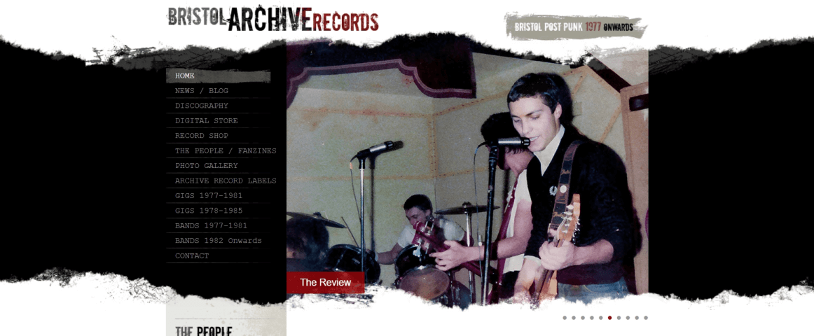 For famous examples of grunge design, we can look at the music website Bristol Archive Records: